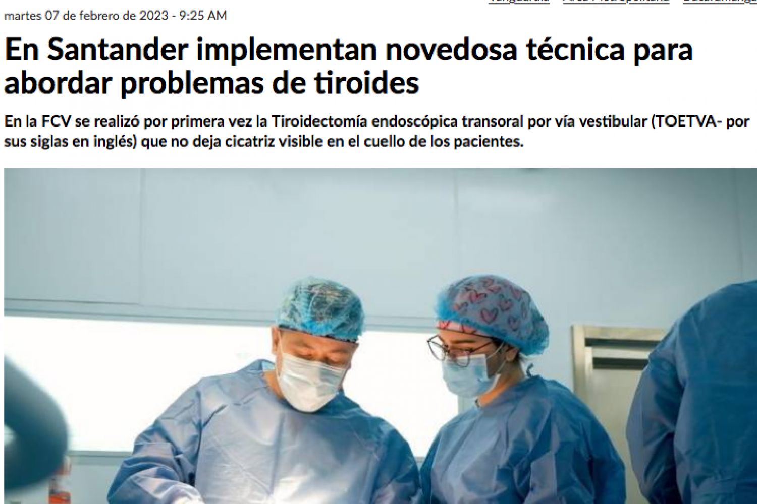 Así registró Vanguardia Liberal la implementación Tiroidectomía endoscópica transoral por vía vestibular (TOETVA- por sus siglas en inglés) que no deja cicatriz visible en el cuello de los pacientes, del que soy parte.